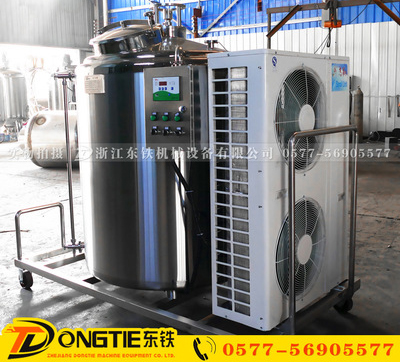 不銹鋼立式制冷罐選用高性能、節電型的全封閉式壓縮機裝有可靠保護器,不會因過載或系統故障而燒壞電機。保溫層采用聚氨酯發泡新工藝,絕熱性能好。罐體選用優良不銹鋼材料制作,帶有自動清洗裝置及攪拌裝置。