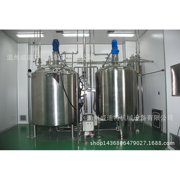 調配罐結構:該裝置分為缸體,缸蓋,攪拌槳,進料口和排氣閥。全部由進口不銹鋼1Cr18Ni9Ti制成,并根據GB741-80的技術要求進行。缸體拋光,內部拋光。有用于攪拌的攪拌槳。頂部是擺線針輪行星減速器,該行星減速器驅動攪拌槳,該攪拌槳可以組裝,拆卸和清潔。有兩個可打開的氣缸蓋用于清潔。圓柱體的底部傾斜,便于排空。它連接到其他兩個進料口和管線,以促進各種組件的連續供應。下方有一個排出口,可以安裝旋塞閥。均勻混合后,將旋塞閥的手柄旋轉90度以排放物料,并在排放完成后關閉物料以實現均勻混合。目的。