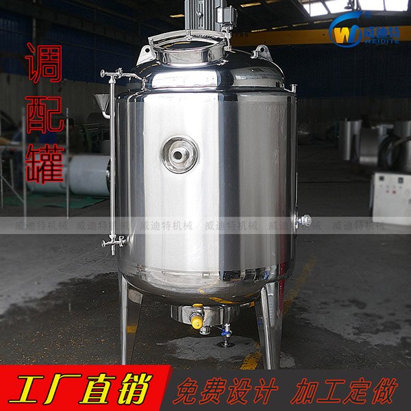 調(diào)配罐又名拌料缸、混料缸,有節(jié)能、耐腐蝕、生產(chǎn)能力強(qiáng)、清洗方便、結(jié)構(gòu)簡(jiǎn)單等優(yōu)點(diǎn)。主要用于混合乳制品和糖等元素,混合后使用各種化學(xué)物質(zhì)進(jìn)行均勻混合。它是乳制品,飲料和制藥廠必不可少的設(shè)施。材料是SUS304或316不銹鋼。