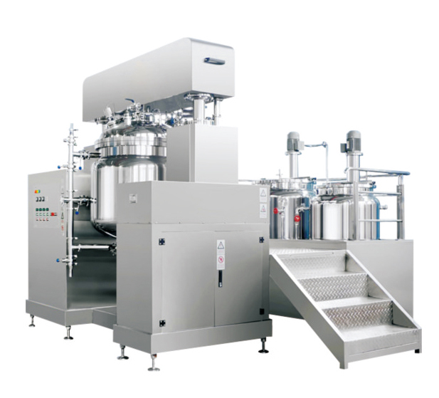 In the high viscosity of emulsion, especially the manufacturing process of cream, ointment, emulsion products, usually the most problematic is the dispersed phase particle size and mixing the air mixed with products, due to the large particle size emulsion instability, lack luster; products will make the products mixed with air bubbles bacterial contamination, easy oxidation, and the appearance is not smooth. Aiming at the two problems, ZJR series vacuum emulsifying mixer, stirrer blade, center by stirring and scraping mixing characteristics are complementary, combined into the best way of mixing, to achieve the perfect mix of products. By adopting the method of vacuum pumping, the produced products are no longer mixed with air bubbles in the mixing process, thereby ensuring the production of high quality products with rich luster, fine and good ductility.
