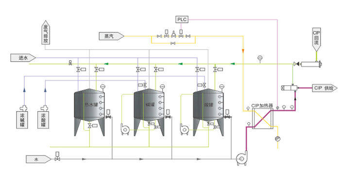 CIP system is one of the prerequisites of food pharmacy production sanitary standards. it can remove the active mixed pollution and insoluble particles of impurity,reduce or remove the micro chemicals and heat source that pollute the productions.