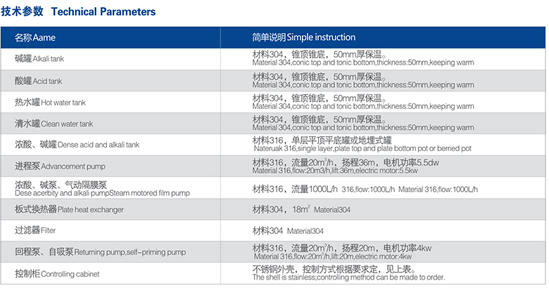 The system can undertake single process such as acid cleaning,alkali cleaning,and hot water cleaning,and also can take completely automatic cleaning according to the cleaning process designed. Besides, it can control the growing of micro chemicals.semi-automatic or fully automatic equipments can be made to order.
